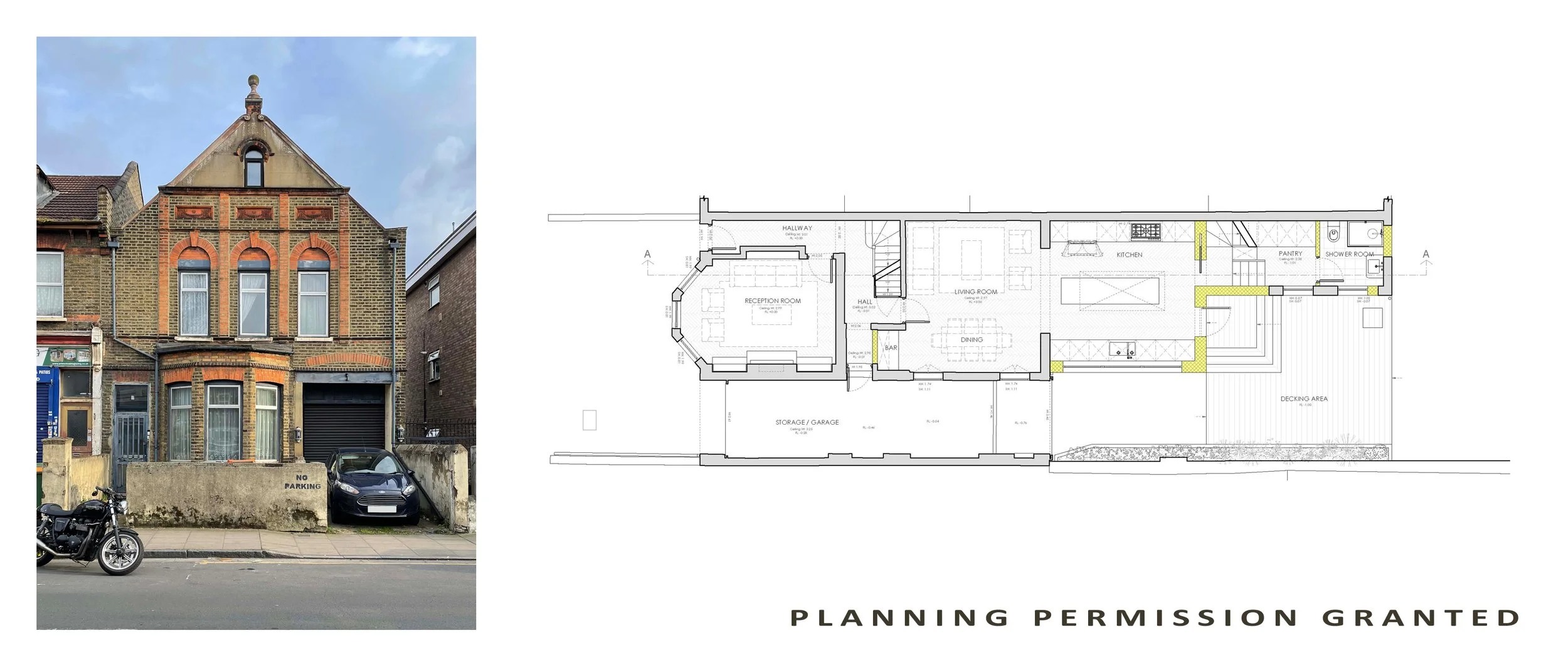 Planning permission granted for a side rear extension and full internal refurbish for our project in East London. October 2024.
